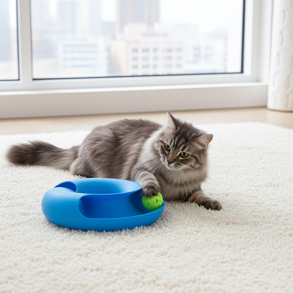 Produktbeschreibung: Interaktive Katzen-Kugelbahn „Endless Circle“Verwandeln Sie Ihren Wohnzimmertisch in eine magische Katzen-Arena! Unsere runde Kugelbahn ist das aktuell beliebteste Spielzeug für neugierige Katzen und bietet stundenlangen, hypnotischen Spielspaß – ganz ohne Batterien oder Elektronik.